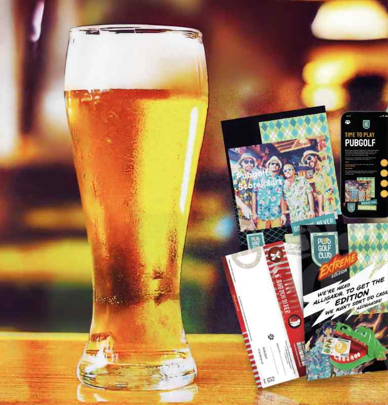 SPEEL ÉÉN VAN ONZE UITGESTIPPELDE ROUTES IN BINNEN- OF BUITENLAND, OF MAAK JE EIGEN RONDE IN JE DORP, STAD OF KEET MET HET PUBGOLF EIGEN STAD-SPEL.
